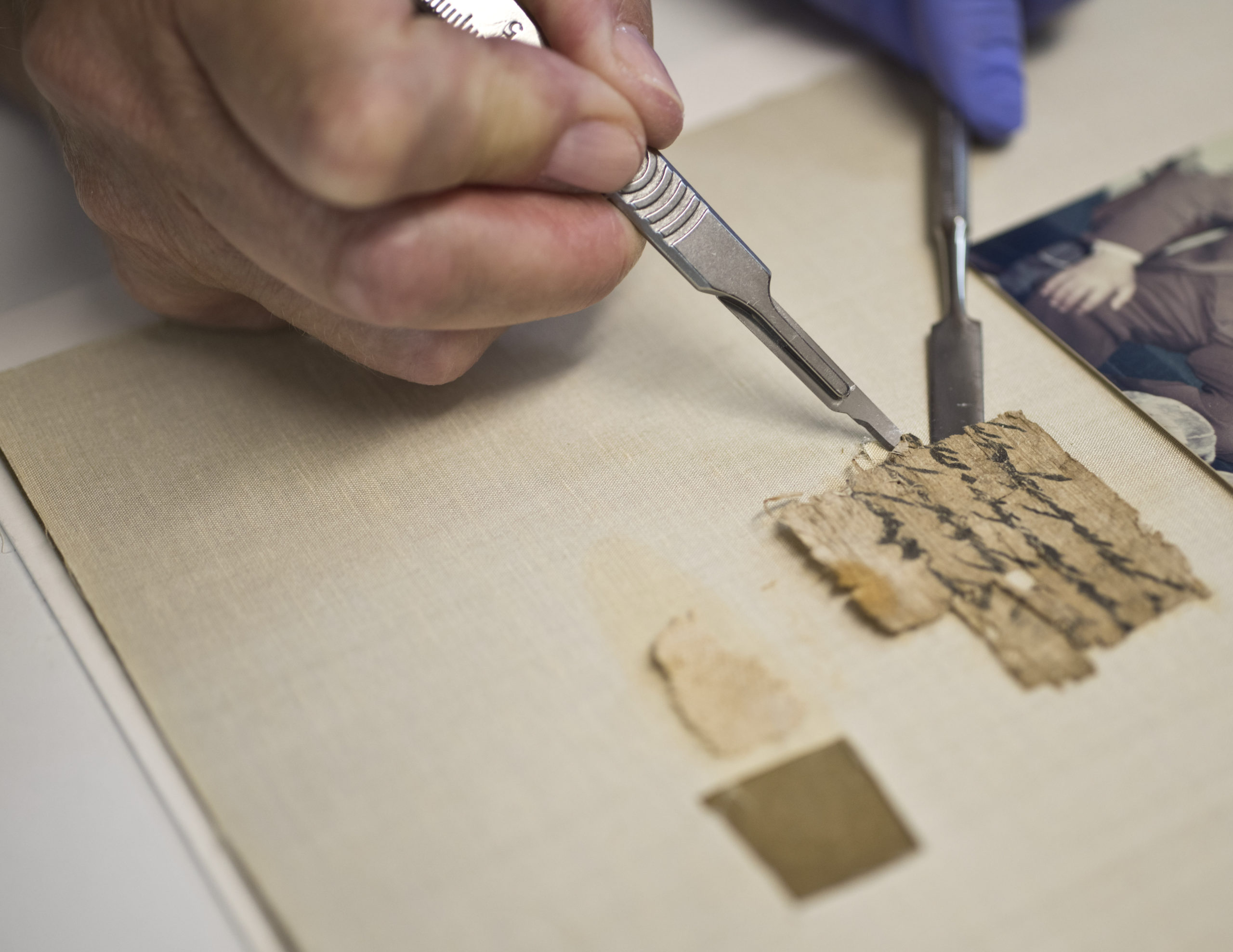 הפפירוס מטופל במעבדת המגילות של רשות העתיקות. צילום-יולי שוורץ,