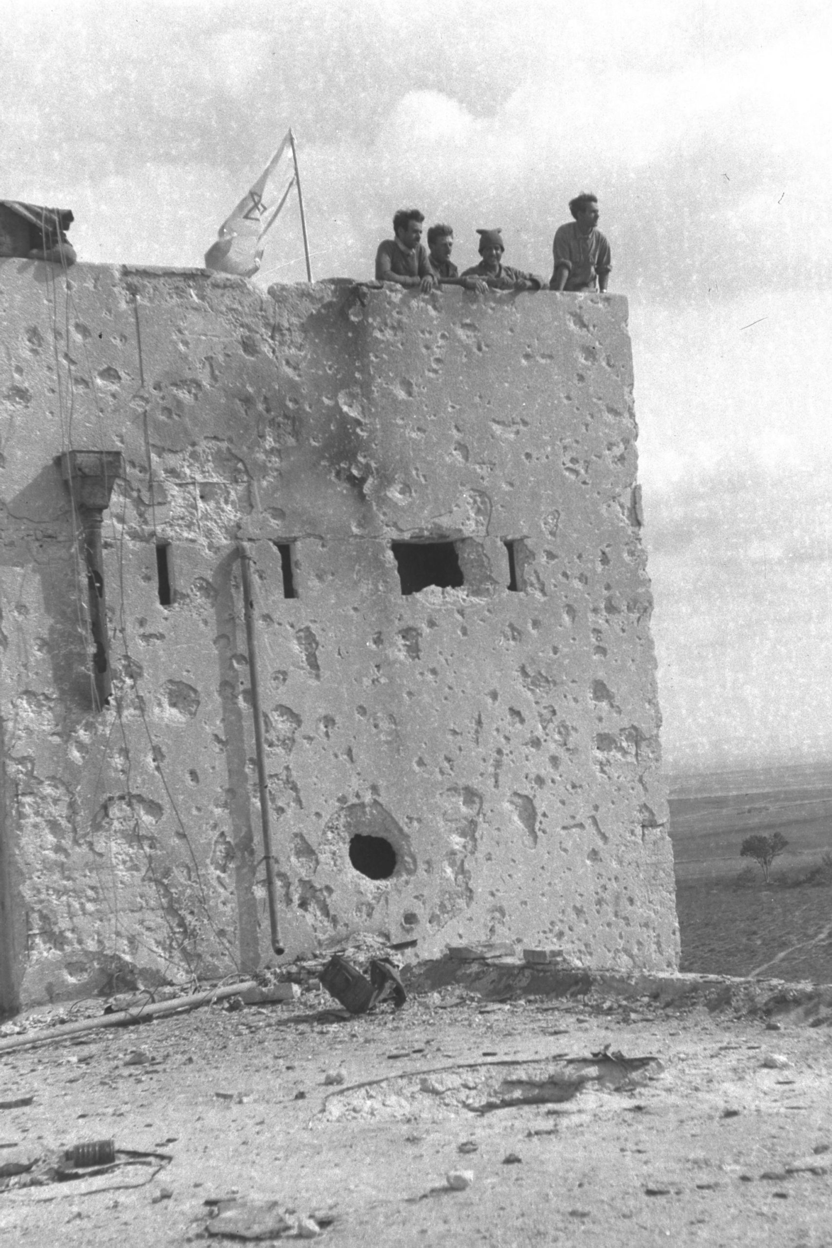 מלחמת העצמאות. בצילום, חיילים ישראלים שומרים בתחנת המשטרה עירק סוידן ליד קיבוץ נגבה, לאחר כניעתה לידי הכוחות הישראלים. -צילום: הוגו מנדלסון – ארכיון לע"מ