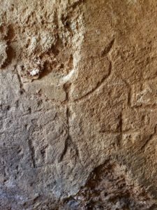 חרוטות על הקירות: דמויות אנשים וצלבים. צילום: גלעד יטאח, רשות העתיקות