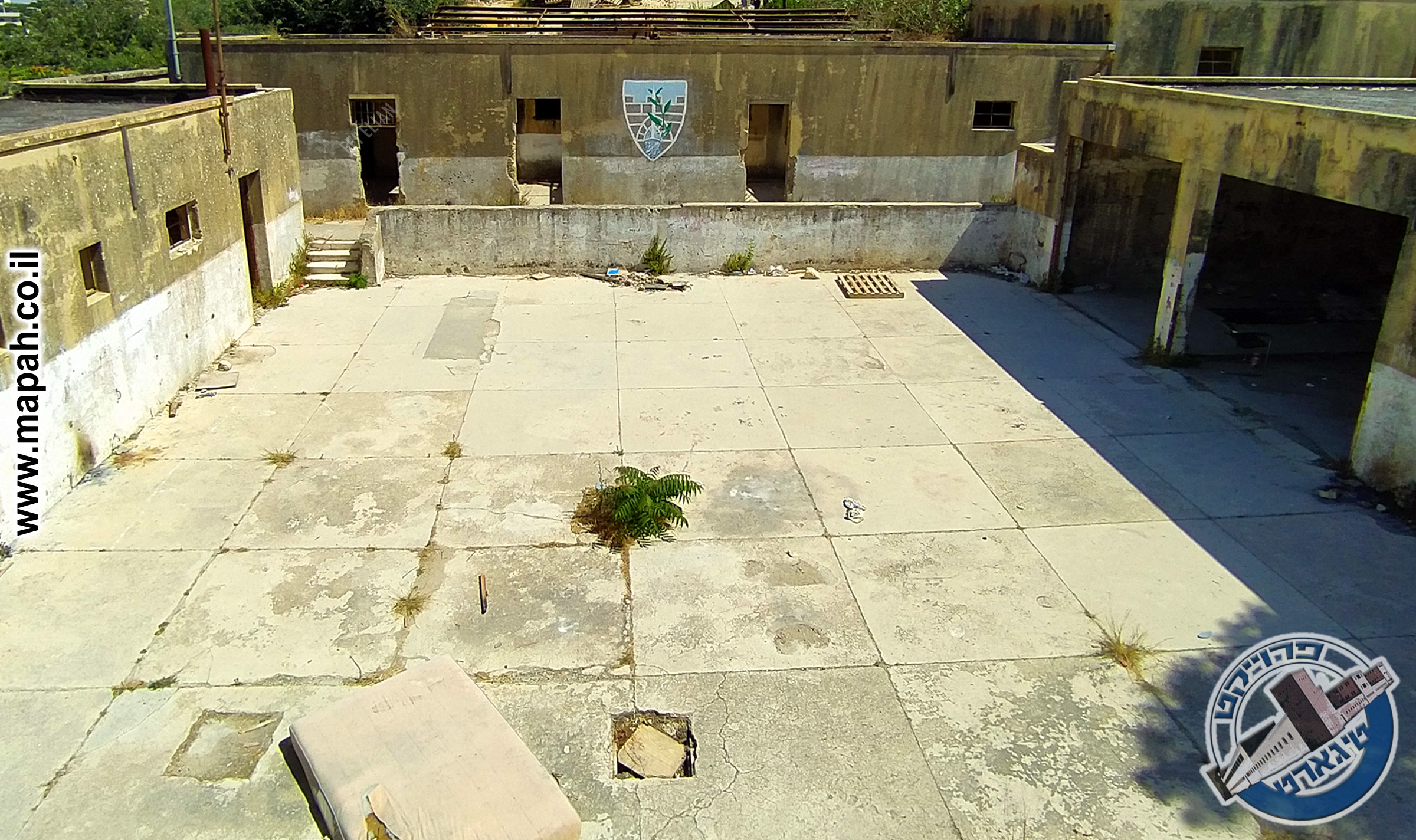 משטחי הבטון בחצר הפנימית, תחתיהן מאגרי המים – צילום: אפי אליאן