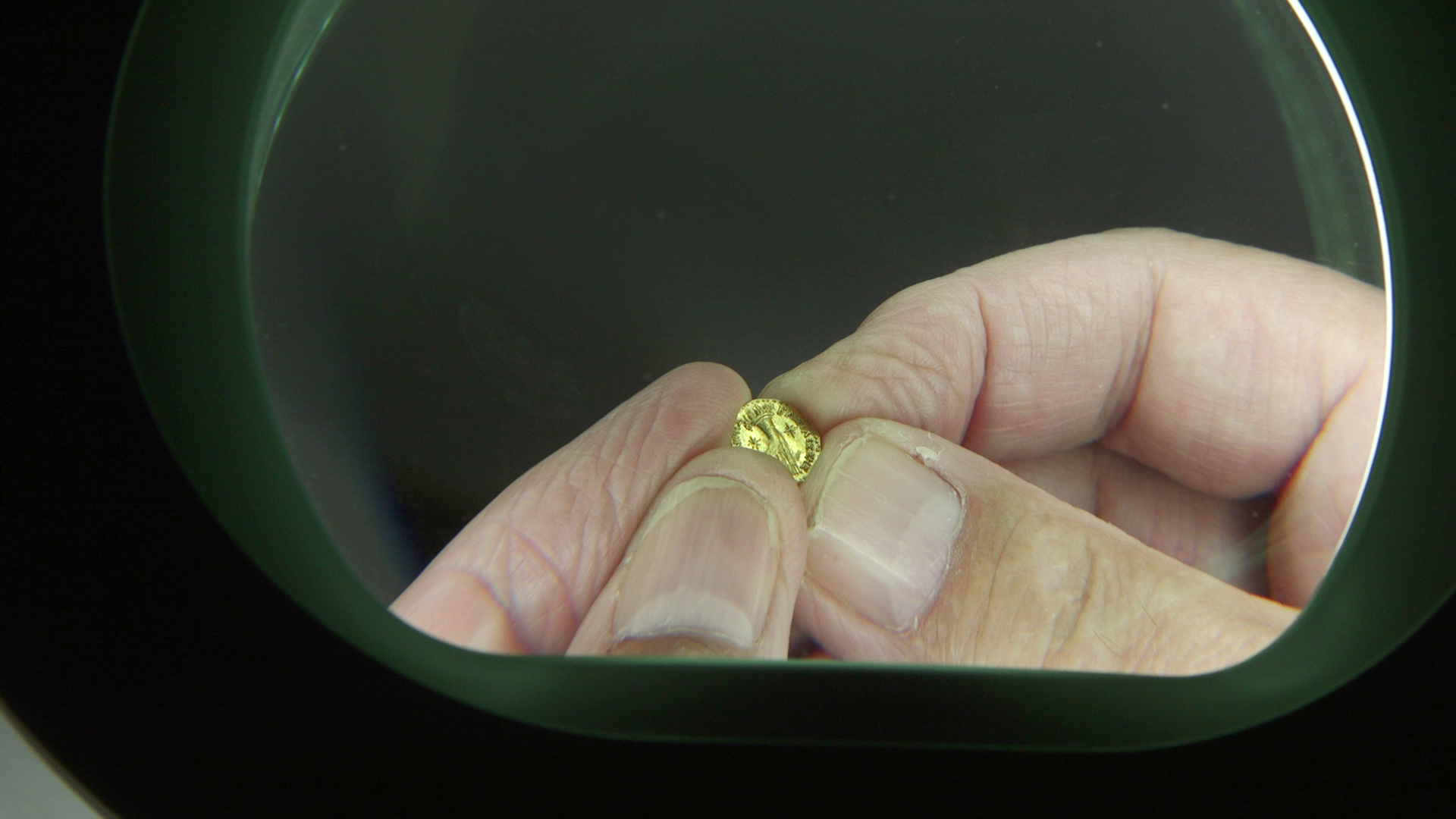 גב המטבע ועליו קרן השפע – סמל להצלחה ופריון. משני צידיה כוכבים ומסביב הכיתוב של המלכה ברניקי ביוונית. צילום אמיל אלגם